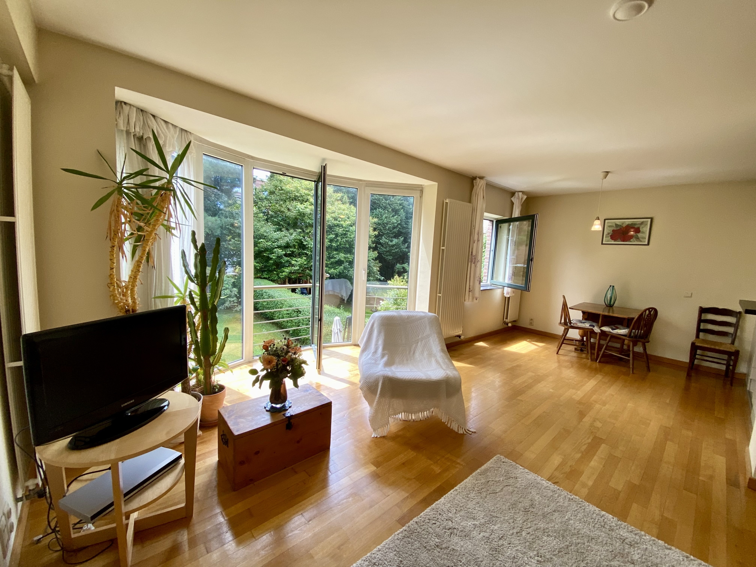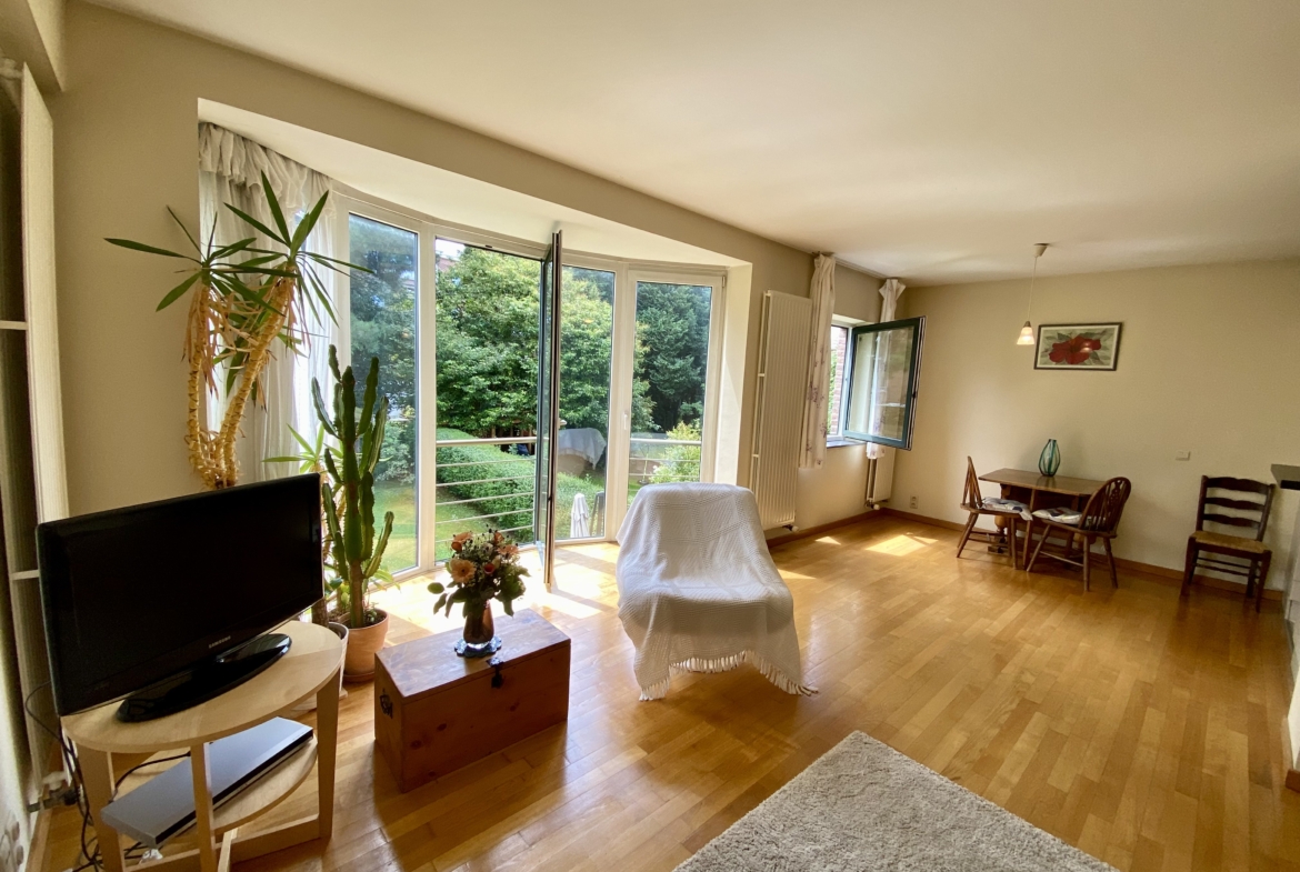In a small, three-unit building, this bright, spacious apartment has a total surface area of 92m2 and comprises: living room with large south-facing windows, dining room and fully-equipped kitchen (dishwasher, fridge, oven, microwave), two bedrooms, one with built-in closets, bathroom with double basin, separate toilet, laundry room, two cellars.